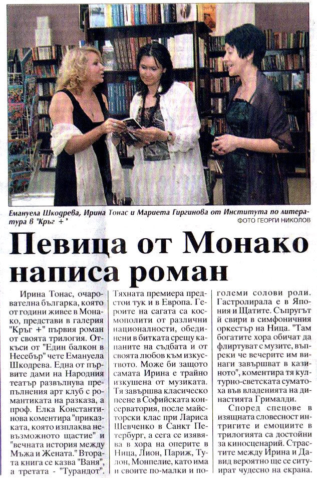 Presse "Là-bas, les gens riches aiment écouter de la musique classique, et beaucoup d'entre eux terminent leur soirée à l'Opéra" Contactez Irina Contact
